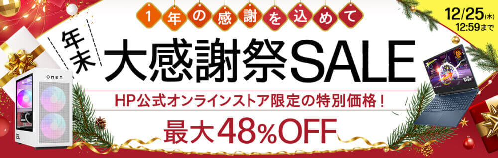 | HP (OMEN) | ①アウトレットセール ②年末大感謝祭セール | ①品切れ次第 ②12/25まで |
