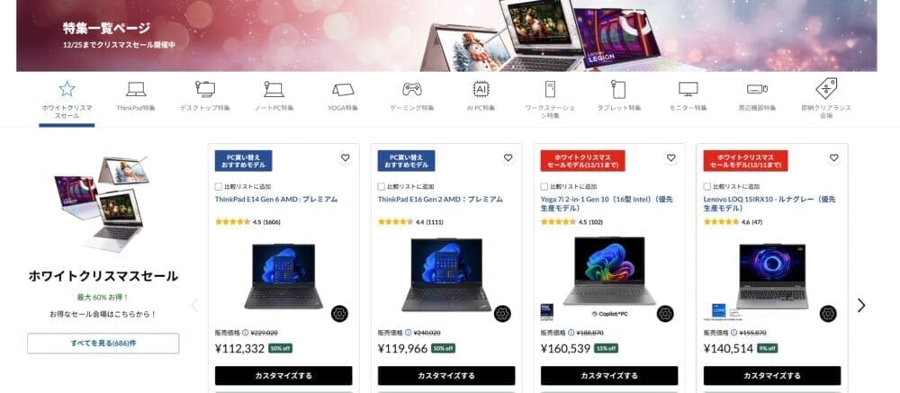 | レノボ (Legion) | ①クリスマスセール | ①12/25まで |