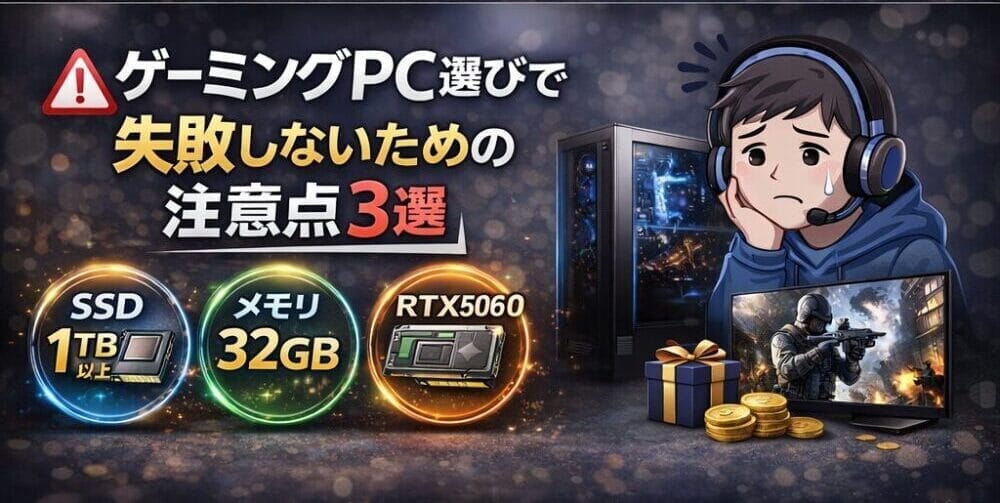 ここでは、ゲーミングPCを選ぶ際に特に注意しておきたいポイントを3つ紹介します。