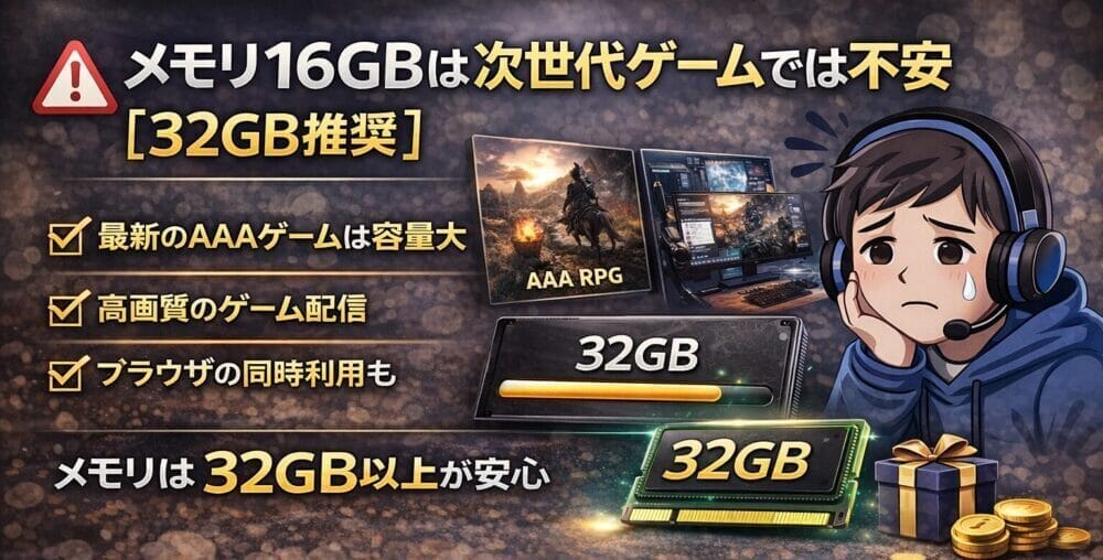 メモリ16GBは次世代ゲームでは不安【32GB推奨】