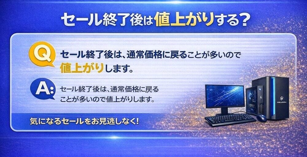 本記事では、ドスパラの最新セール情報や安くなりやすい時期をわかりやすく紹介。GALLERIA(ガレリア)をお得に買うコツや、購入前にチェックしておきたいポイントもあわせて解説します。