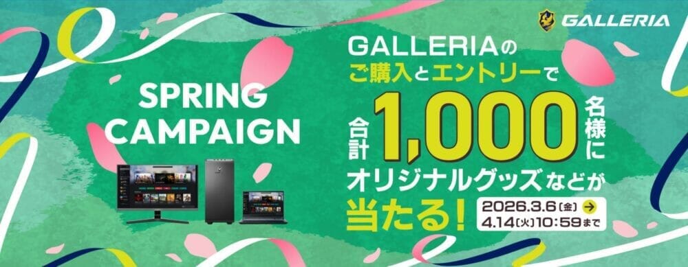 GALLERIAを購入予定の人は、セール価格だけでなくこのキャンペーンもあわせてチェックしておきたいところです。