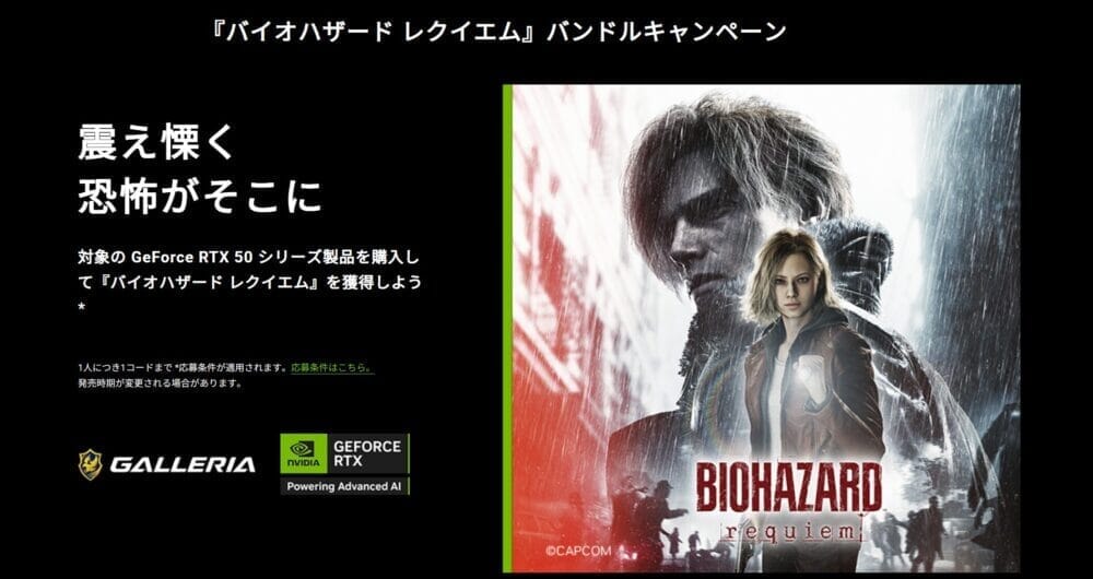 | 『バイオハザード レクイエム』NVIDIA バンドルキャンペーン | 対象商品購入で『バイオハザード レクイエム』プレゼント | 2026年3月16日まで |