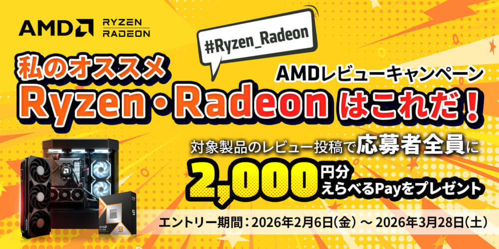 | AMDレビューキャンペーン | 対象商品のレビュー投稿で2,000円分のPayプレゼント | 2026年3月28日まで |