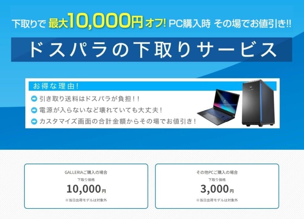 ドスパラの下取りサービス│ガレリア購入で最大10,000円割引