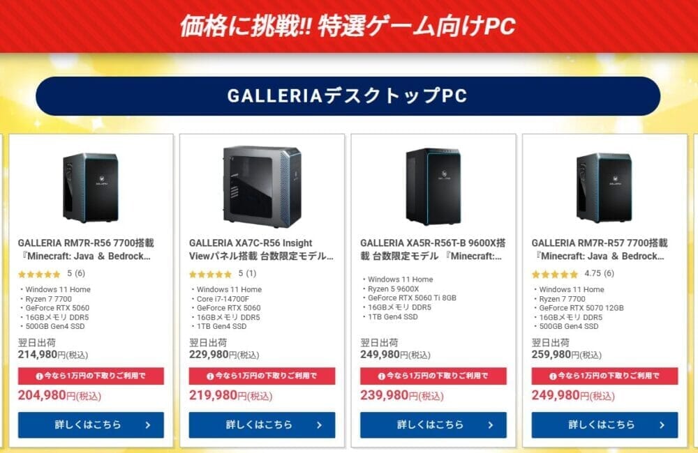 少しでもお得にガレリアやゲーミングPCを購入したいなら、まずは特選価格の対象モデルを早めにチェックしておきましょう。