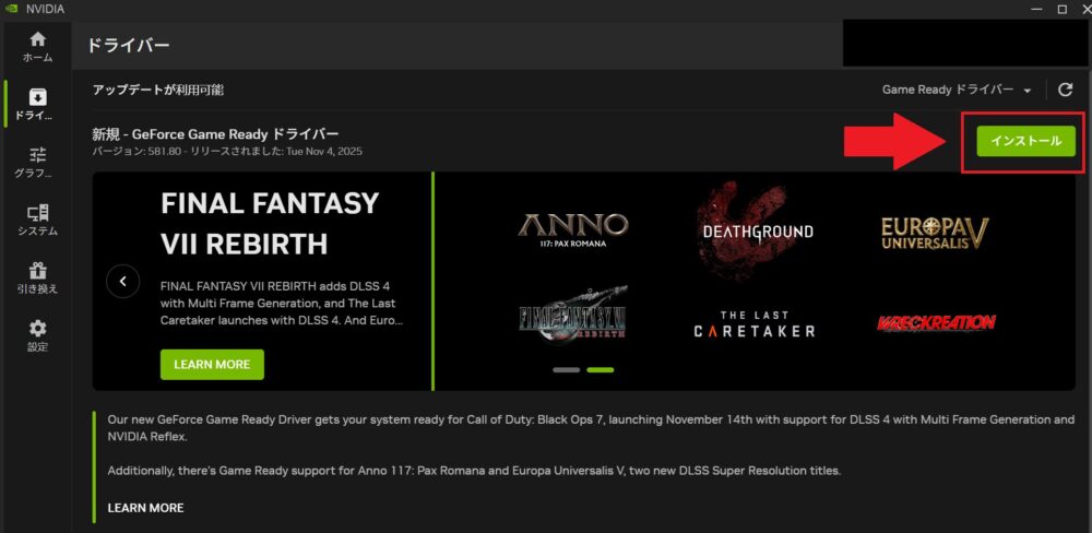公式サイトで「推奨スペック」を確認して、CPU / GPU / メモリが足りているかチェックしましょう。