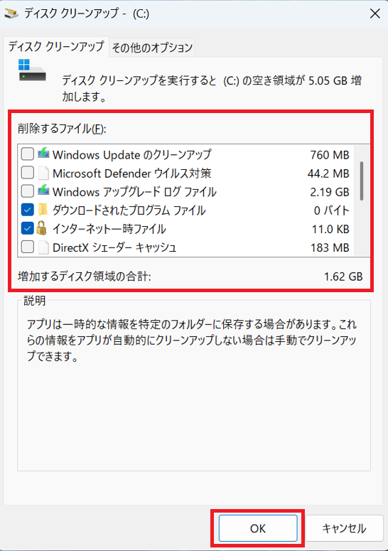 - ⑤ 不要なキャッシュ・ゴミファイルの蓄積