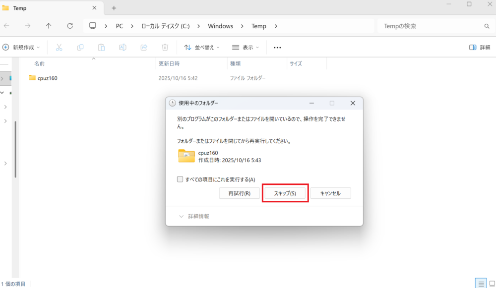 - タスクマネージャー(Ctrl + Shift + Esc) を開く