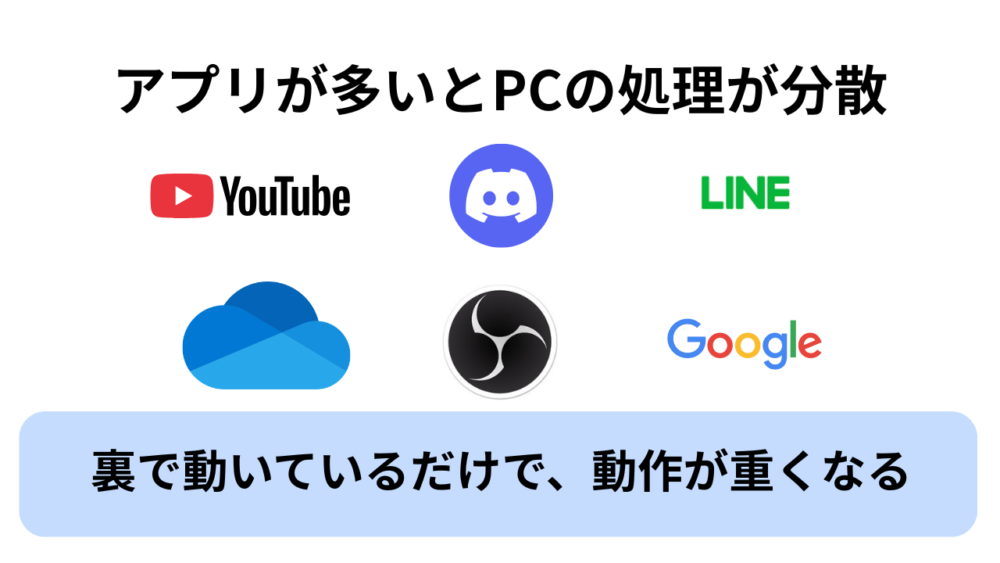 | バックグラウンドアプリの負荷 | 裏でCPUやメモリが奪われている | 急に重くなる・動きが不安定になる |