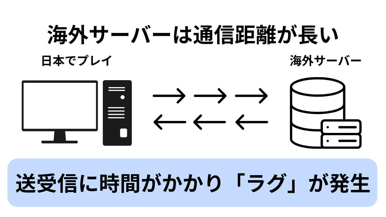 | ゲームサーバーの品質や距離 | サーバーが海外・遠方にあると、Pingが高くなり操作が遅れる |
