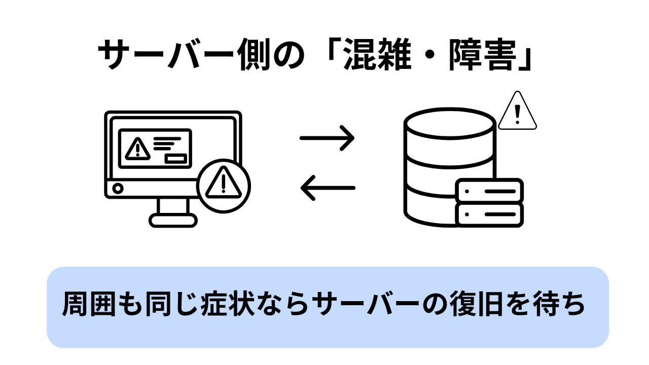 | サーバーが混雑している | 人気タイトルのイベントやアップデート直後に起こりやすい |