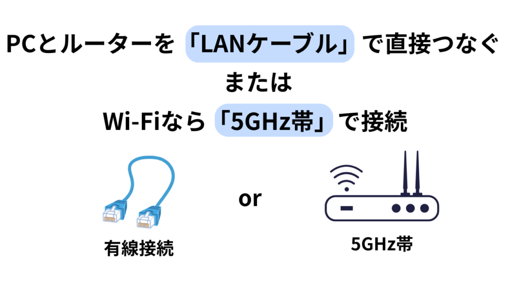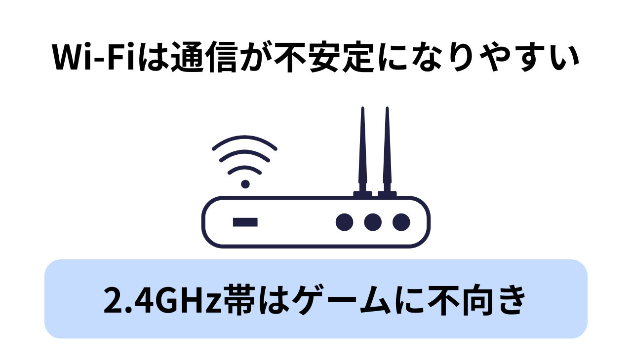 ゲームに最も安定するのは「有線接続」ですが、Wi-Fiしか使えない場合は「5GHz帯」に接続しましょう。