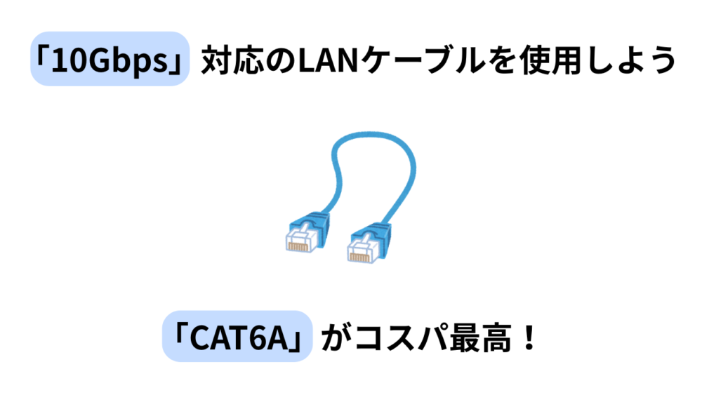 | CAT6A | 10Gbps | 500MHz | ゲーミング向け |
