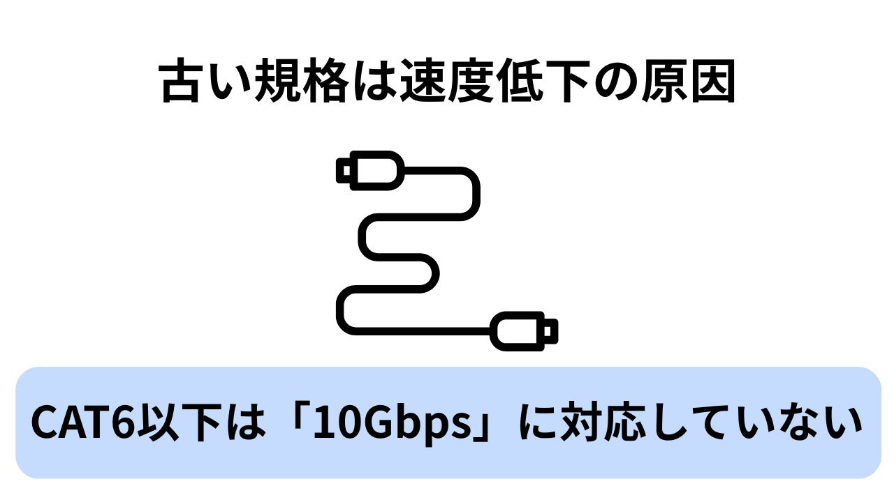 たとえば、CAT5eは最大1Gbpsまでしか対応していないため、10Gbps対応のNURO光や高速回線プランを使っても、実測速度が頭打ちになります。