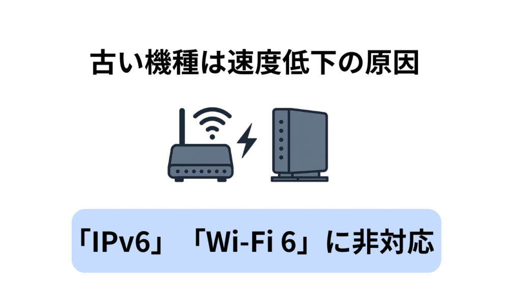 また、古い機種では「IPv6」や「Wi-Fi 6」などの最新通信方式に対応していないことも多く、せっかく高速回線を契約していても、通信速度を活かしきれません。