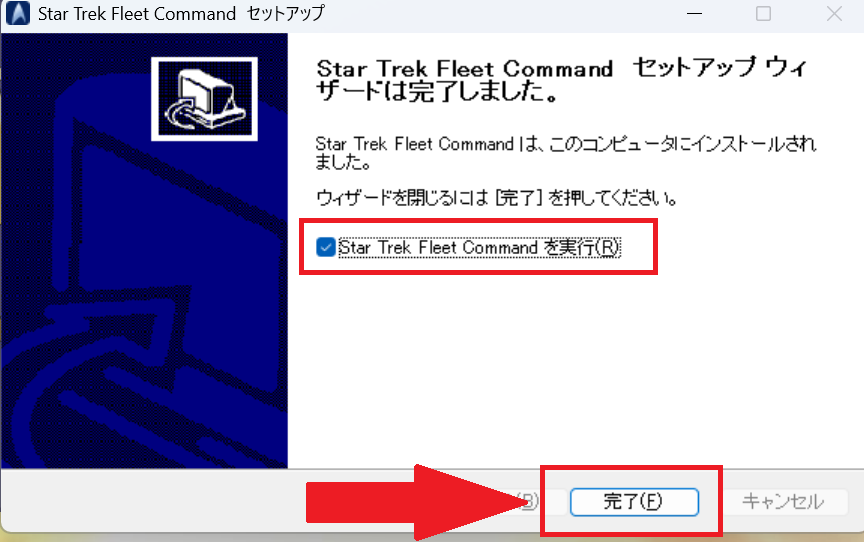 Star Trek Fleet Commandを実行にチェックを入れ、「完了」をクリック。